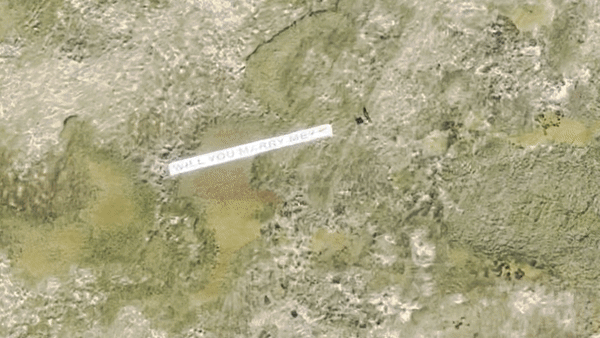Your pilot will then share the second secret radio call as you approach the location of the giant sign, approximately 1 minute away. This will then be followed by a third and final secret radio call, when your helicopter is just about to pass overhead the giant sign, allowing you to ask your soon-to-be fiancé to look out the window.