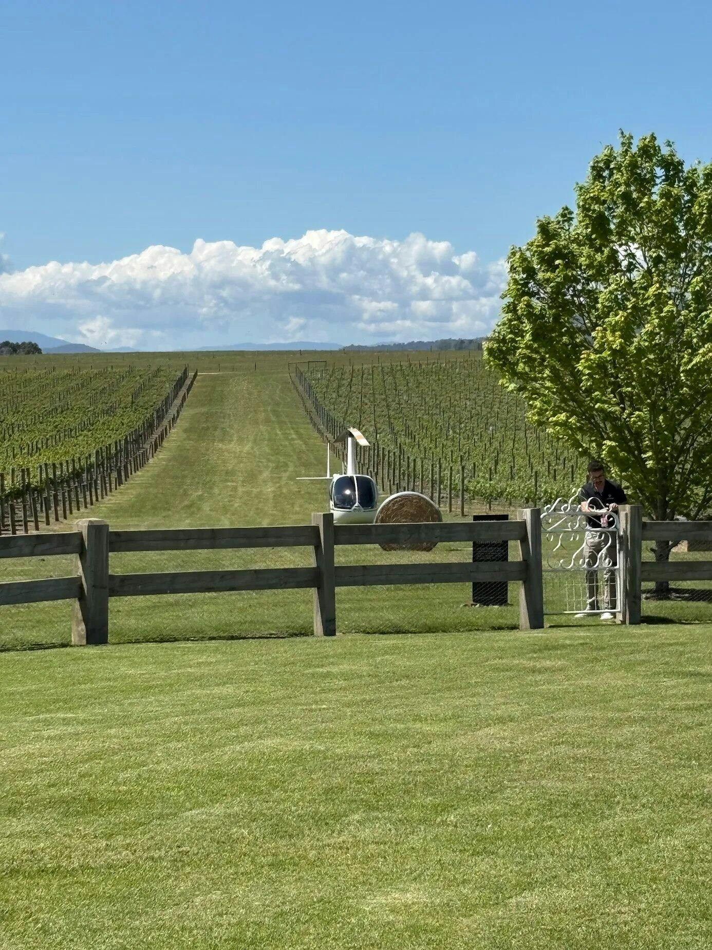 Landing at Zonzo Estate by helicopter for lunch in the Yarra Valley.